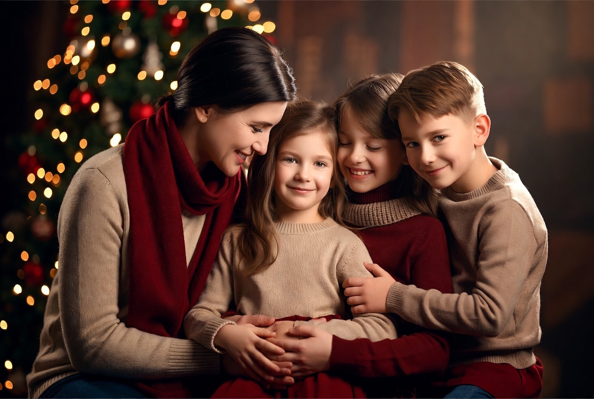 Одежда играет ключевую роль в создании образа. Ребенок, которому жмет, колется или мешает свободно двигаться, не будет искренне улыбаться на фото. Выбирайте наряды из натуральных, приятных к телу тканей. Не забывайте о праздничной эстетике. Если у вас семейная фотосессия, продумайте общий стиль или цветовую гамму. Сочетающиеся оттенки или общие акценты сделают кадры более гармоничными и целостными. Избегайте пестрых или мелких узоров, они могут "рябить" на фото и отвлекать взгляд. Не перегружайте образ лишними деталями. Легкого праздничного макияжа для мам и аккуратной прически достаточно.